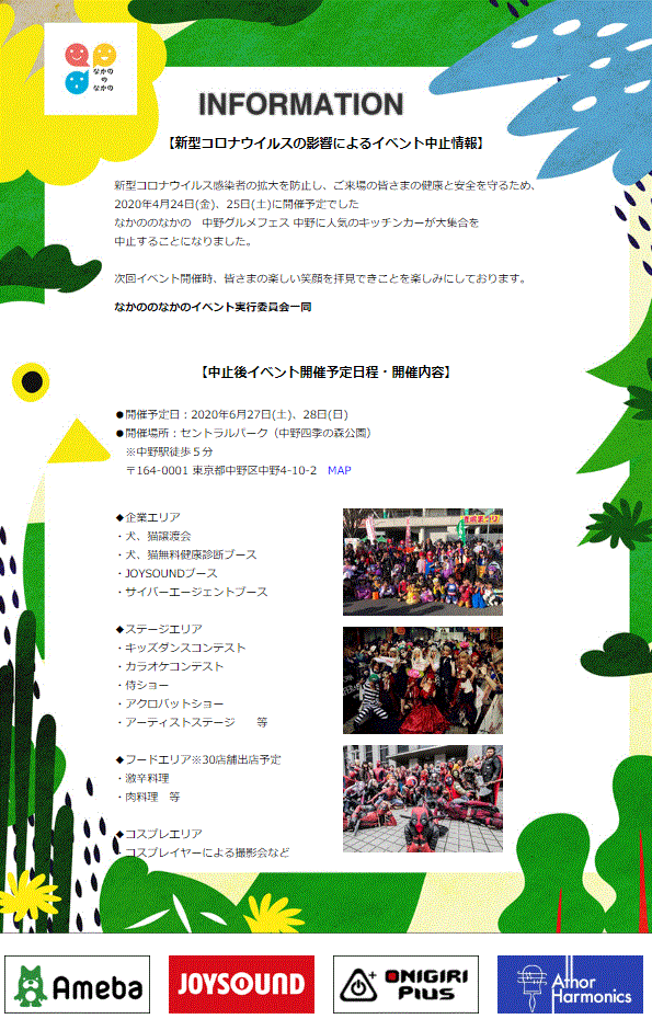 『なかののなかの』4月24日(金)、4月25日(土)イベント中止に関して
